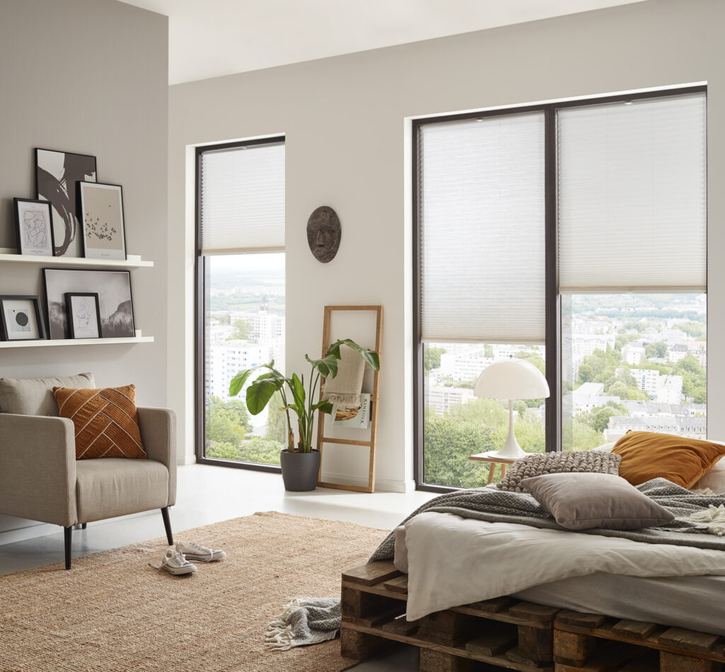 Mit den Plissees, Rollos, Jalousien, Flächenvorhängen und Insektenschutzsystemen bringen Sie Licht und Atmosphäre perfekt ins Gleichgewicht.
